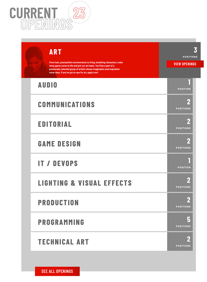 Sure, any game artist or programmer worth their salt would chew off their cordycep-infected arm to work on The Last of Us and Uncharted franchises, but we're also attracting the best and the brightest with enticing perks like yoga, meditation, and working in sunny Santa Monica, CA.